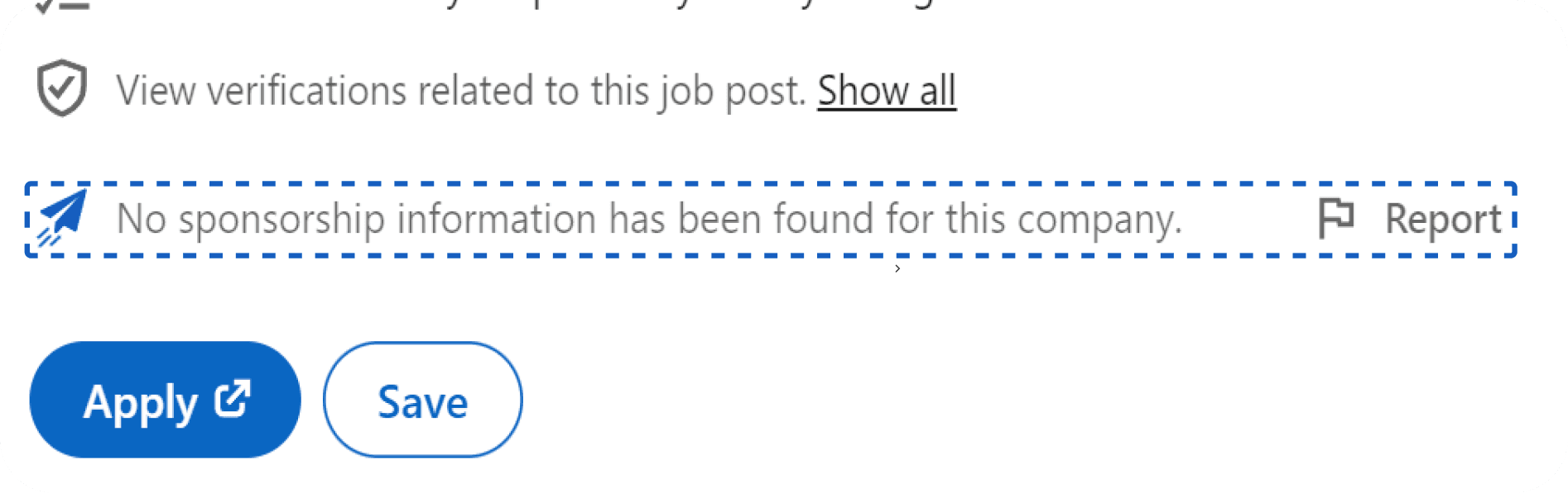 When no sponsorship data is available, users can report inaccuracies directly from the job listing. This ensures candidates are never blocked by missing information.