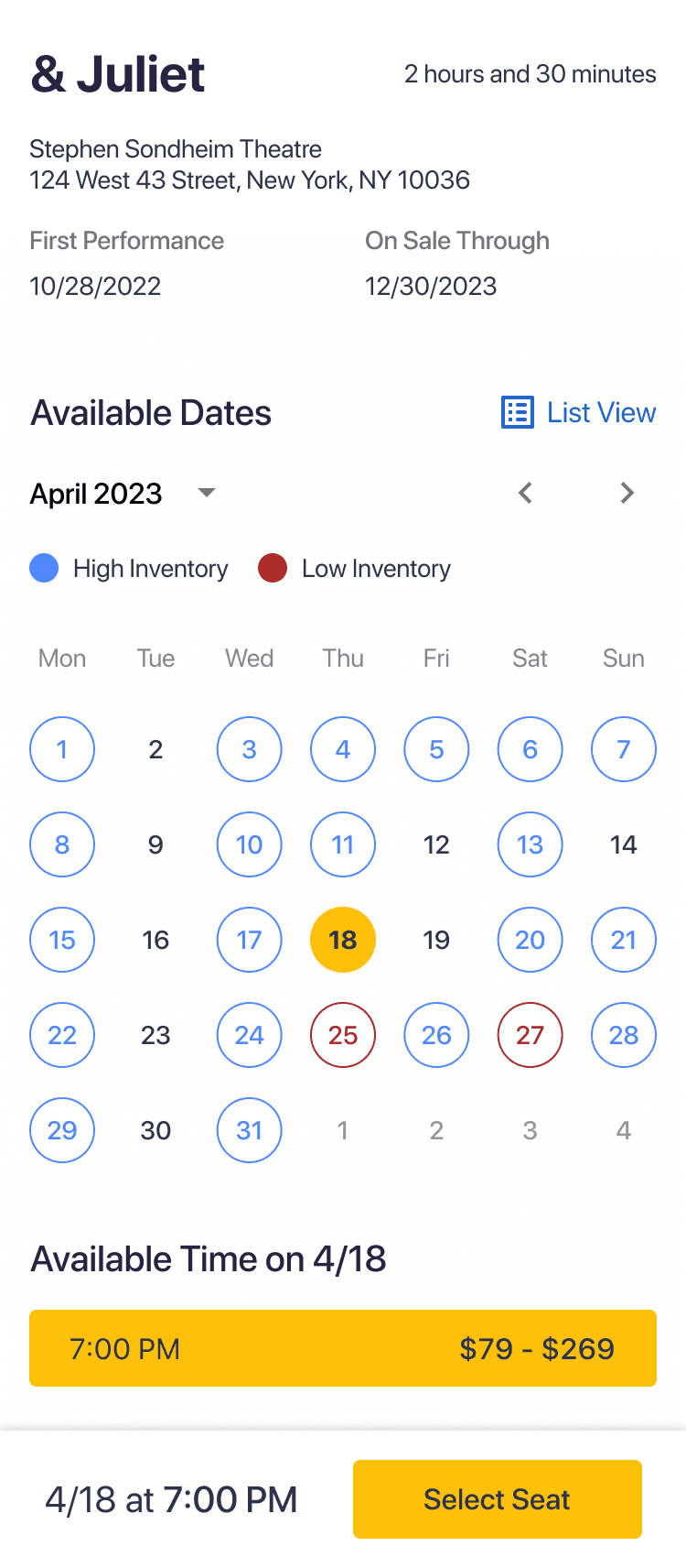Informed decision-making: The calendar view surfaces additional details, such as ticket availability, to help users choose the best date with confidence.