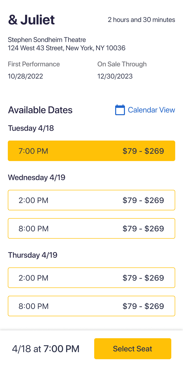 As a newcomer to the Broadway ticketing space, we reviewed competitor platforms to understand how tickets are discovered, priced, and purchased.