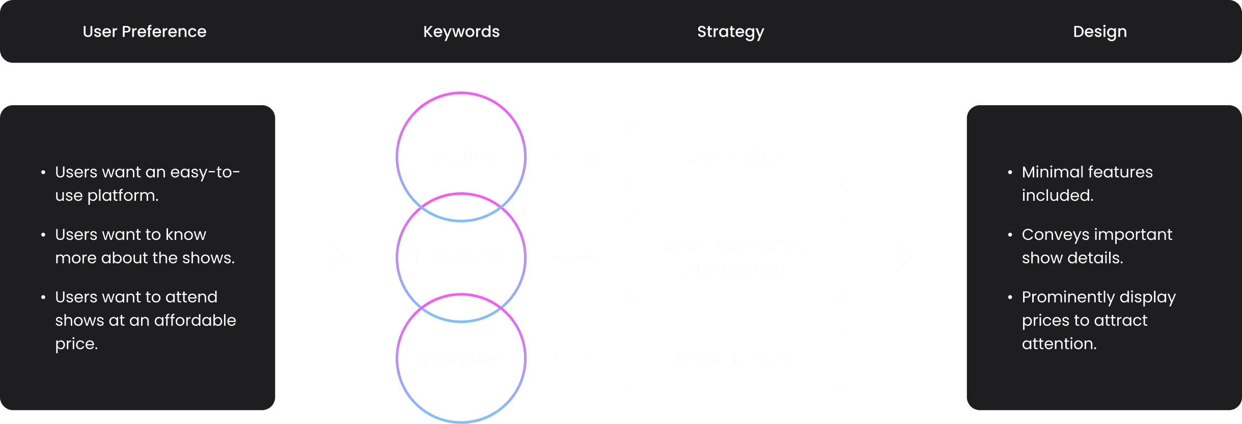 Focused on guiding users from discovery to show details with minimal cognitive load.