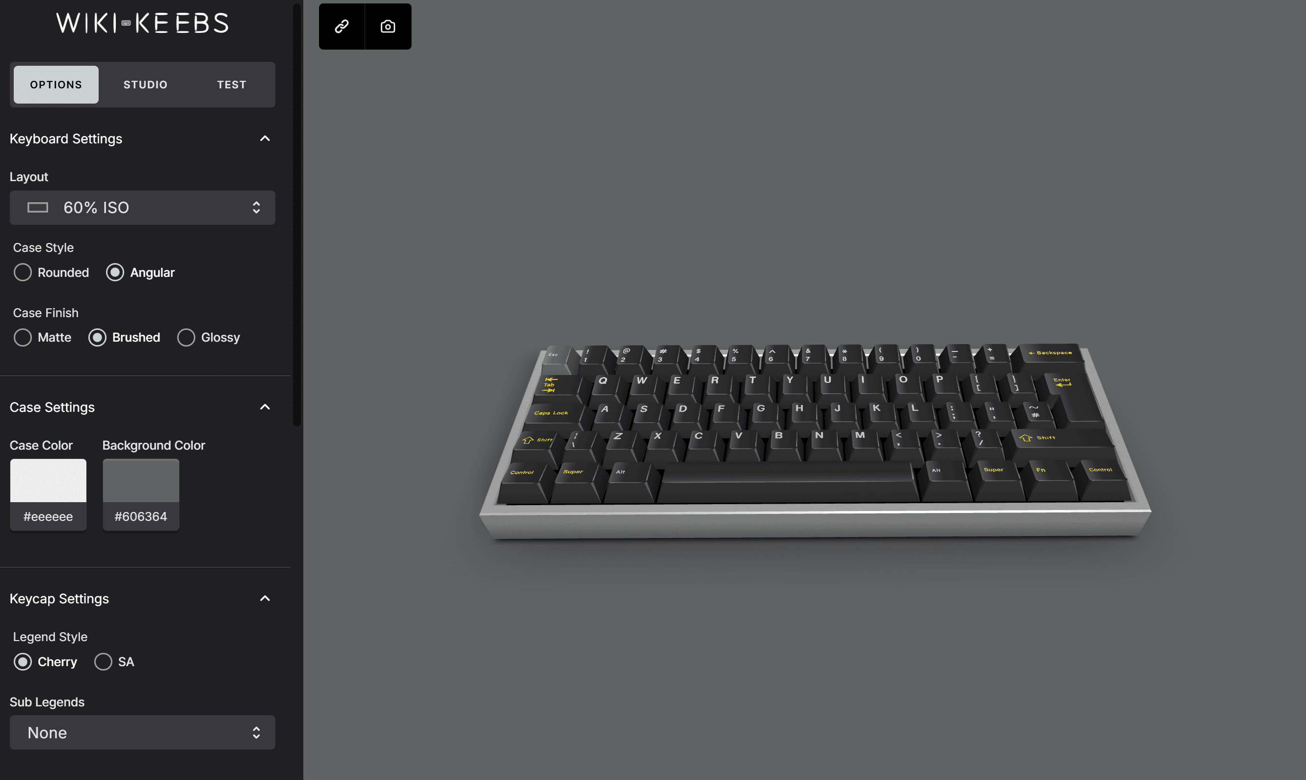 By grouping style, finish, and color controls, users can more easily explore how case design choices affect the overall keyboard aesthetic.
