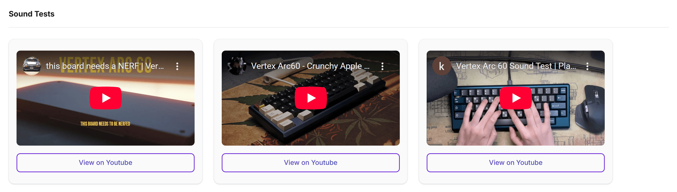 We surfaced curated sound test videos directly on the product page so users can hear how different builds sound before making a decision, reducing uncertainty and unnecessary research across external sites.